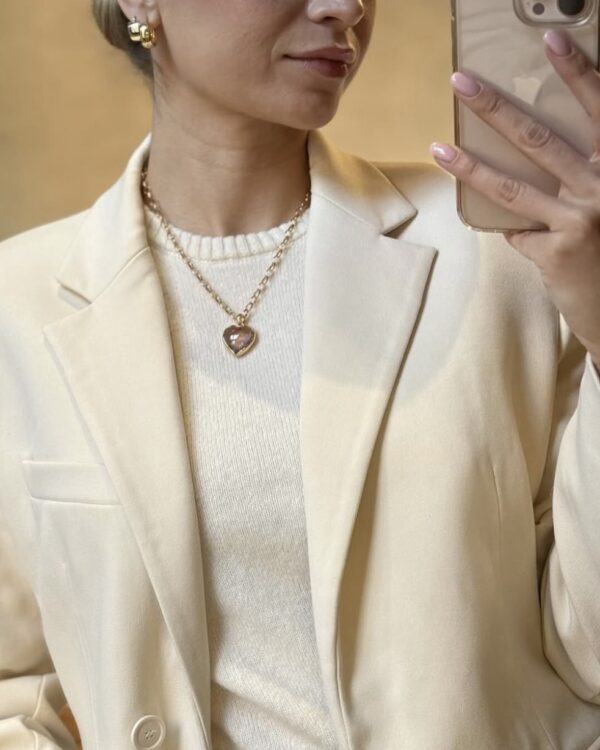 Zawieszkę skomponowaliśmy z grubym, srebrnym łańcuszkiem, który nie jest przymocowany na stałe, więc możesz je zamieniać. Sprawdź dostępne łańcuszki w naszym sklepie. Serduszko można nosić dwustronnie.